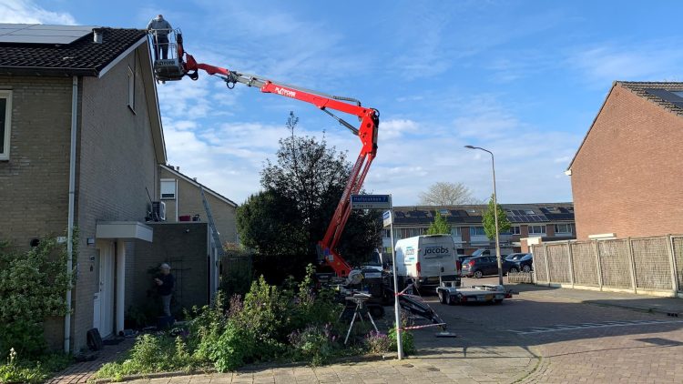 Knik- telscoophoogwerker met 18mtr werkhoogte. Hoogwerker kan door een poort/deur opening van 80x185 cm. Door de rupsbanden geschikt voor diverse ondergronden