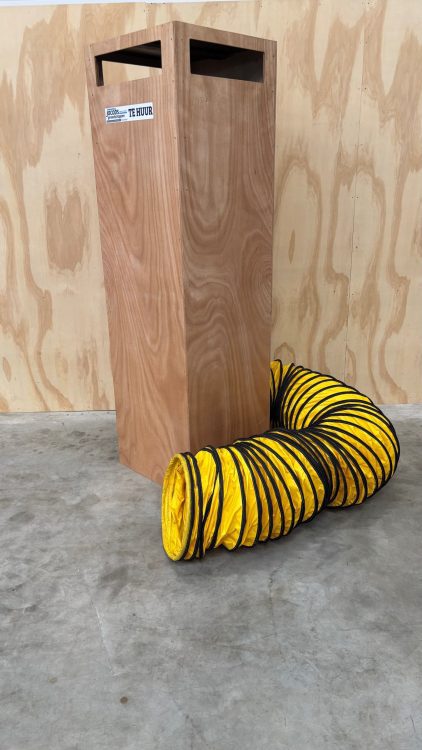 Met deze uitblaaskast komt de warme lucht beter en gedoseerd in de betreffende ruimte. Kast is te gebruiken in combinatie met heater en uitblaasslang. De kast is licht van gewicht en door aanwezigheid van wielen makkelijk te verplaatsen.